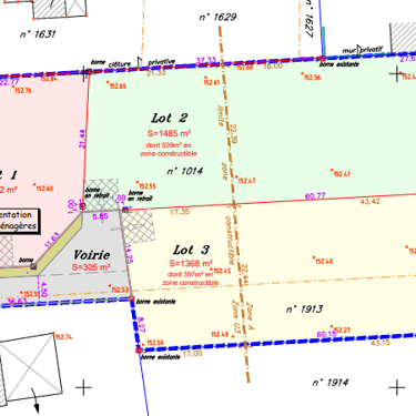 Surface du terrain : 1485 m² , dont 509 m² de constructible